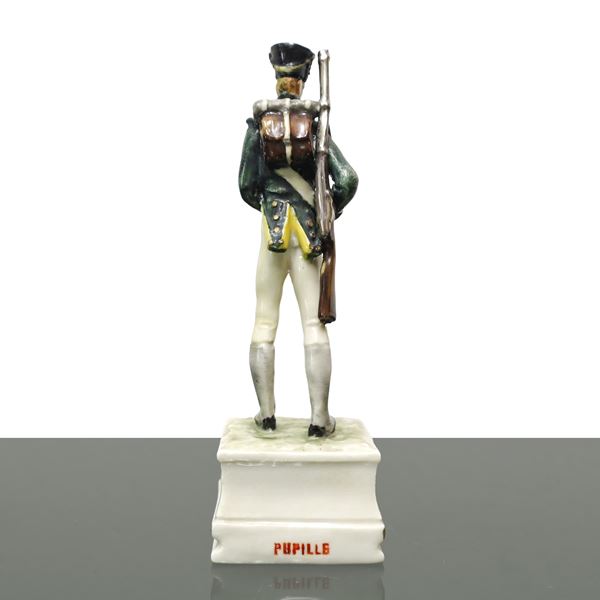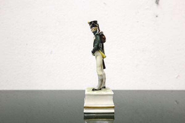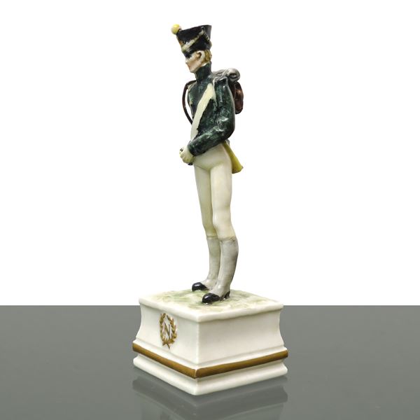 Statuetta in porcellana manifattura Cacciapuoti raffigurante soldato napoleonico, XIX secolo