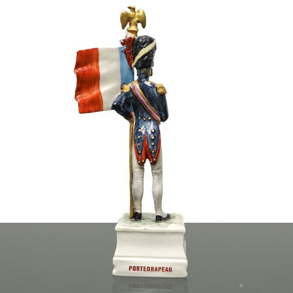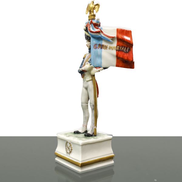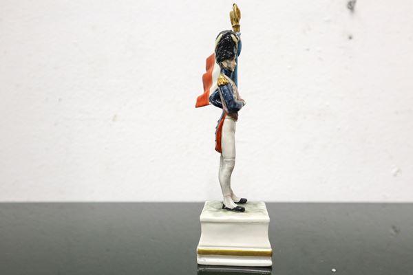 Statuetta in porcellana manifattura Cacciapuoti raffigurante soldato napoleonico, XIX secolo