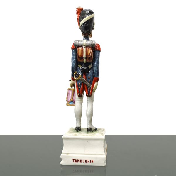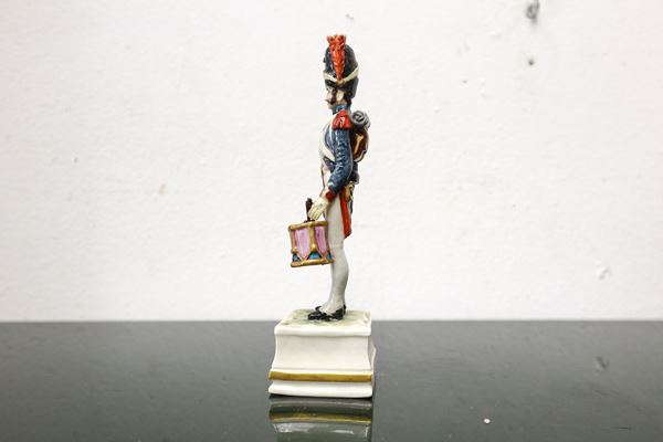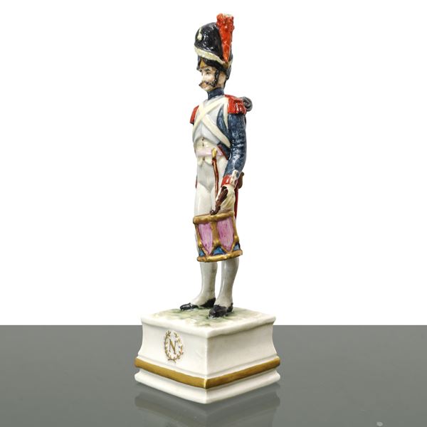 Statuetta in porcellana manifattura Cacciapuoti raffigurante soldato napoleonico, XIX secolo