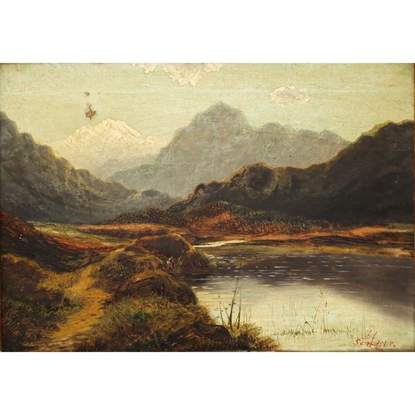Paesaggio lacustre con montagne, Fine XIX secolo