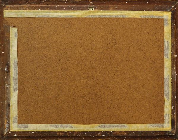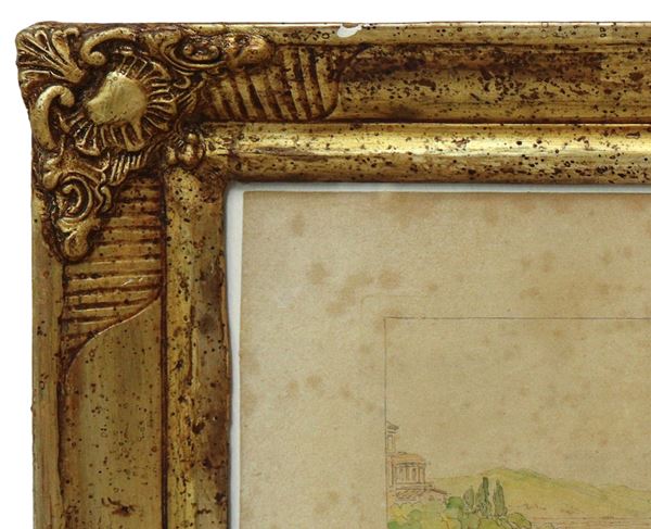 Incisione acquarellata. Firmata e datata, Roma. In cornice di legno dorato e pastiglia a ovuli agli angoli.