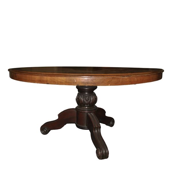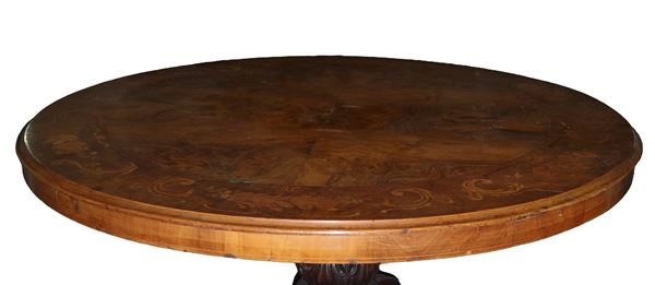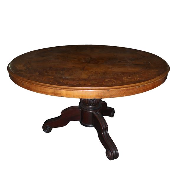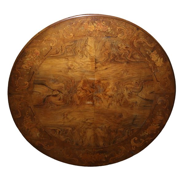 Tavolo rotondo in radica con sei sedie, XX secolo