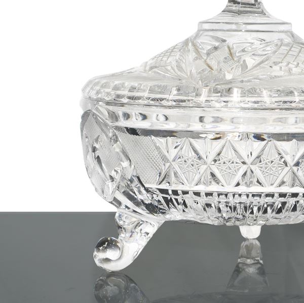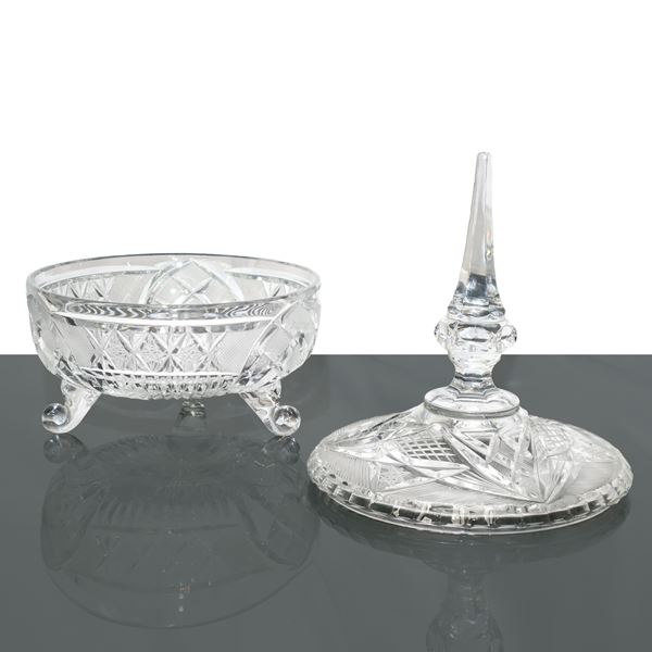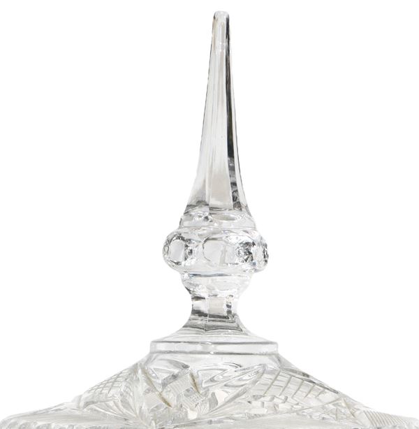 Biscottiera in cristallo di bohemia lavorato ad acido e fresa