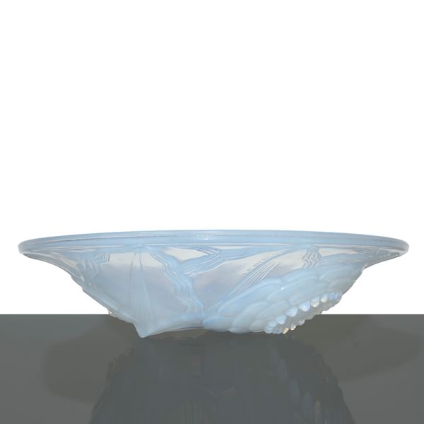 Ciotola firmata P. D'Avesn France in vetro cristallo opalescente con decorazione floreale. Piccola scheggiatura interna al vetro del bordo.
