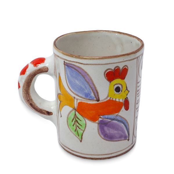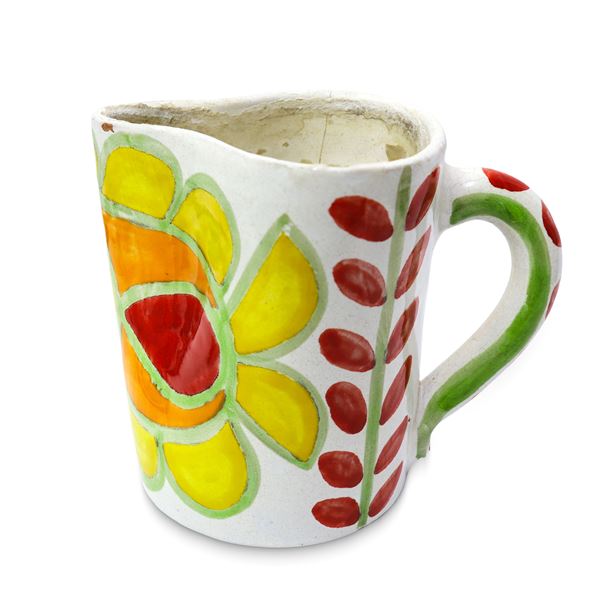 Boccale e bicchiere in ceramica dipinta a mano con pesce e pianta rossa, 1960/1970