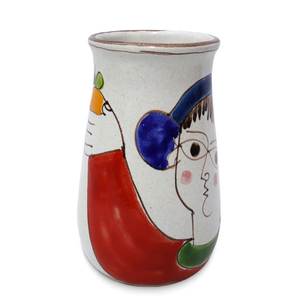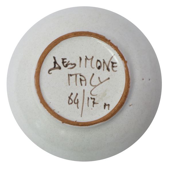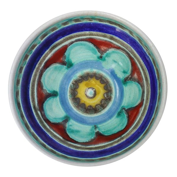 Ciotola e vasetto in ceramica policroma dipinta a mano con fiore verde acqua, 1960/1970