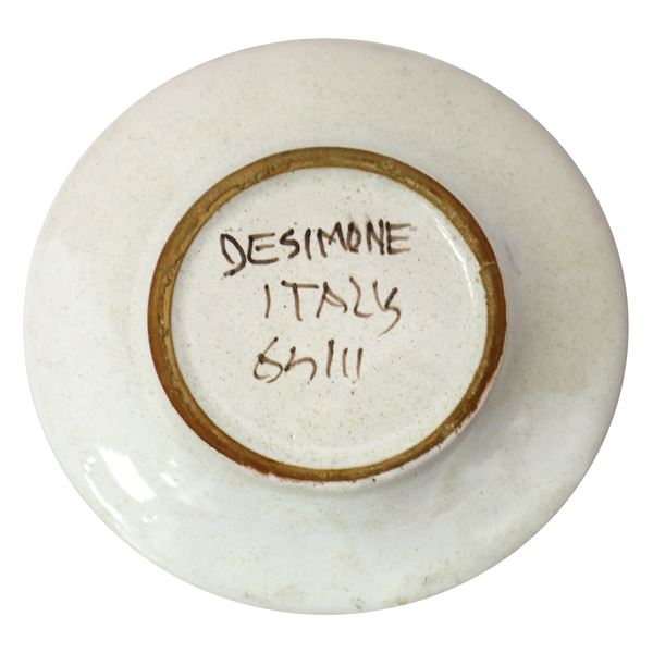 Con 7 piattini e 7 tazzine da caffe'. Firmati alla base De Simone Italy.