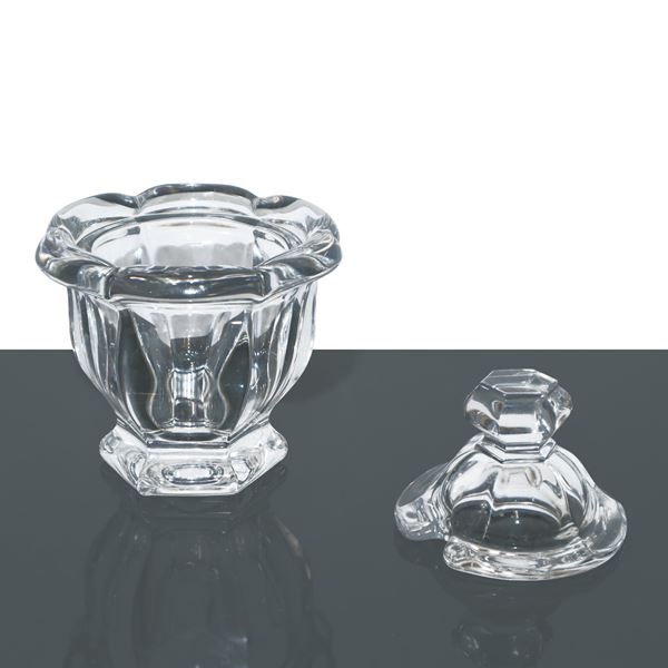 Marchio alla base e nel coperchio. Manca il cucchiaino in cristallo trasparente.