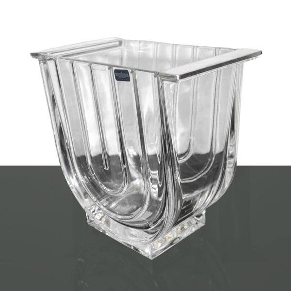 Rinfrescatore decò in cristallo trasparente con manici in argento, Cristallerie Arnolfo Di Cambio. Leggermente sporco