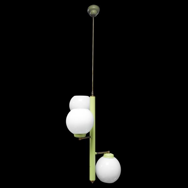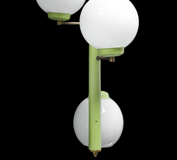 Struttura in metallo, n. 3 bocce in opaline bianco, minimi segni d'uso