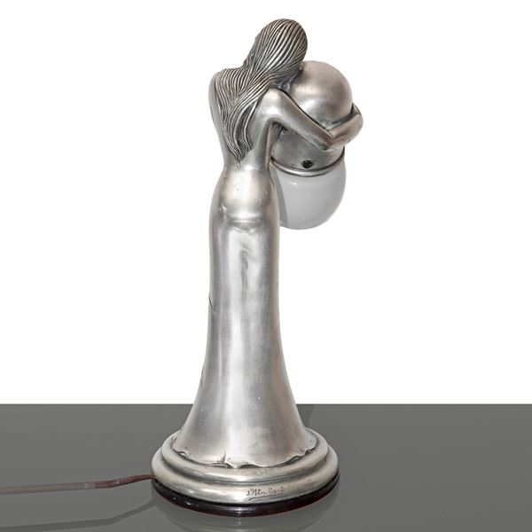 Lampada scultura raffigurante Donna placcata in argento 800 Vermeil