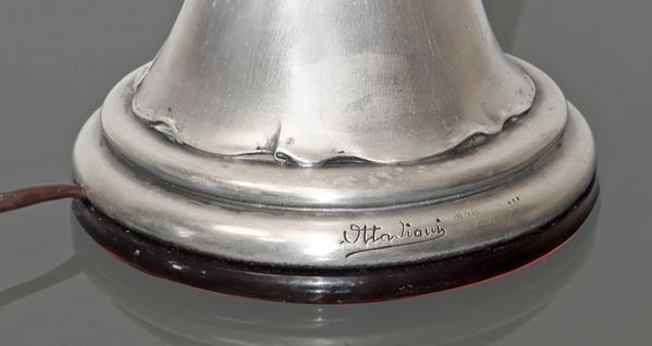 Base in bacalite e diffusore in opaline bianco. Firmata sul retro
