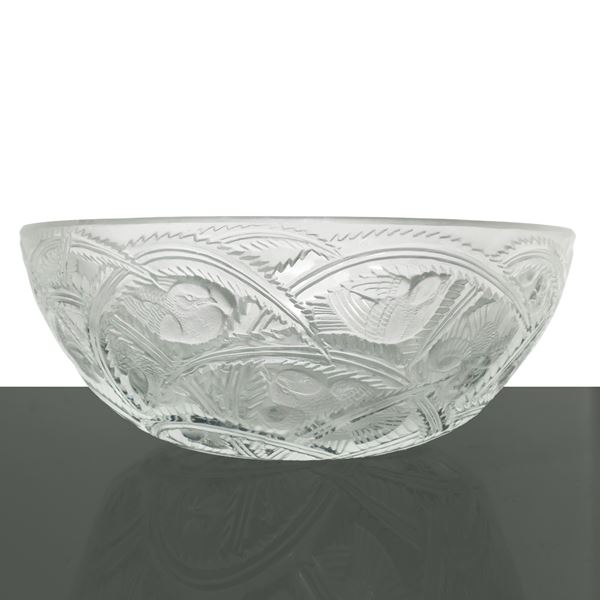 Centrotavola in cristallo con figure di uccelli