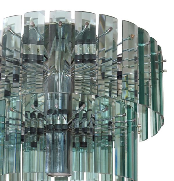 Ferro verniciato e cristalli molati. Minima mancanza su una listella. Mancanza di due coprivite.