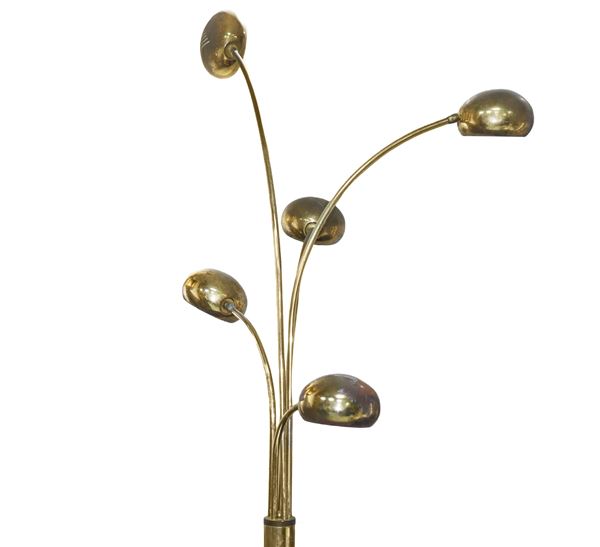 Piantana con struttura in metallo dorato a 5 luci, Anni 70