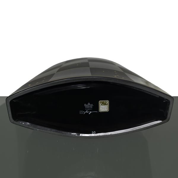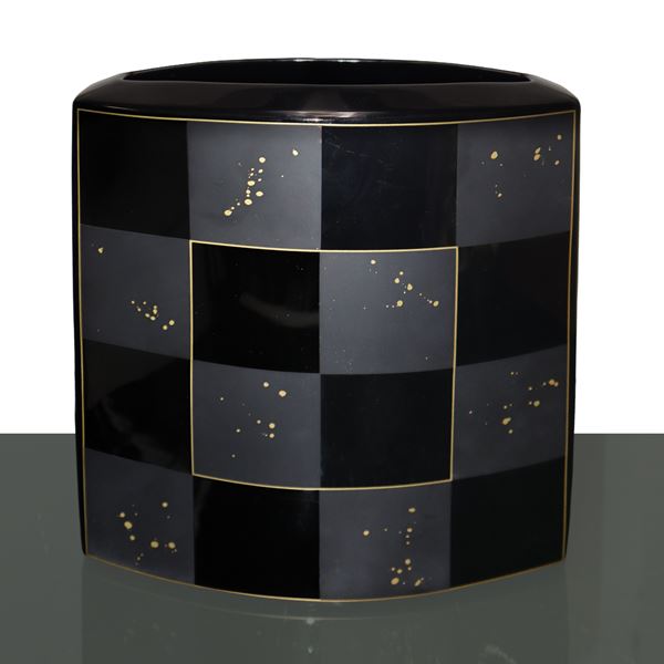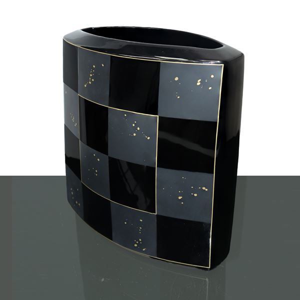 Vaso design Studio Line in porcellana nera decori a quadri lucidi e opachi, dettagli dorati