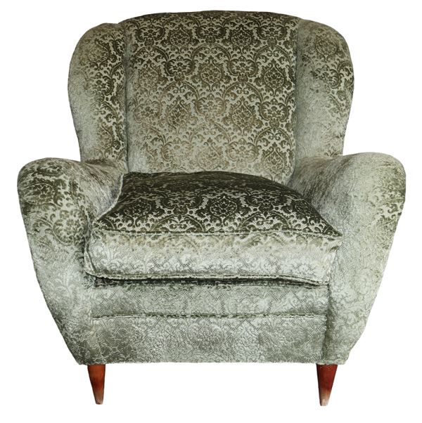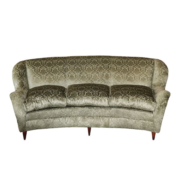 Struttura in legno, rivestimento in velluto nei toni del verde, piedi troncoconici in legno. Ottime condizioni.