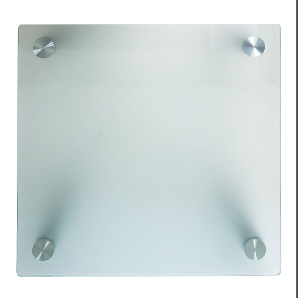 Tavolo basso prod. italiana con piano vetro satinato e con piedi in acciaio grigio