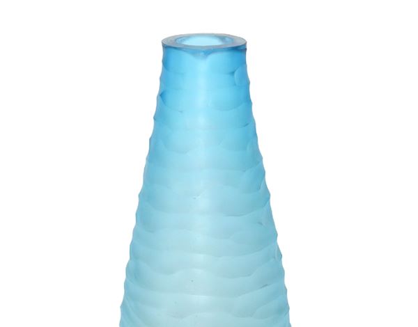 Vaso oblugo in vetro azzurro opaco nello stile Carlo Scarpa