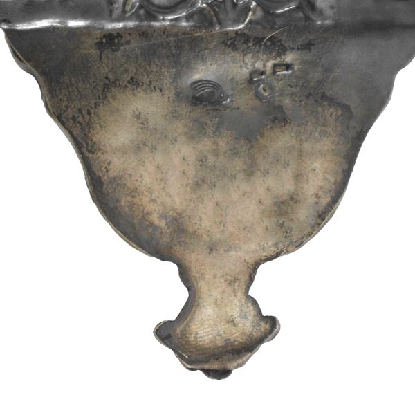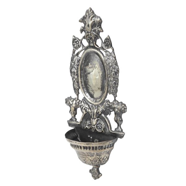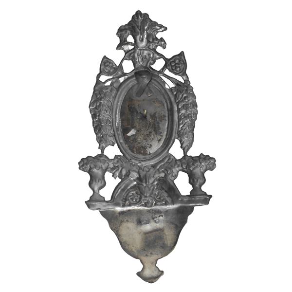 Acquasantiera con raffigurazione di viticci e vasi fiorati a rilievo, XIX secolo