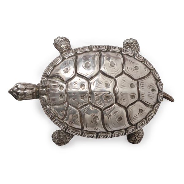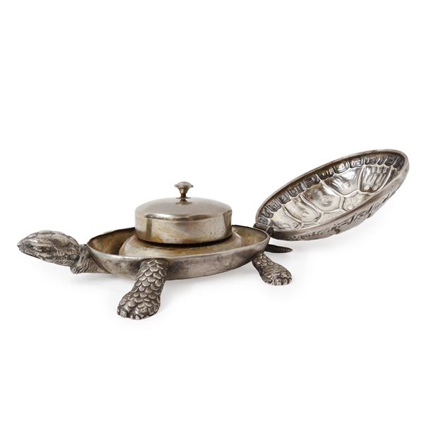 Campanello da reception a forma di tartaruga in argento, XX secolo