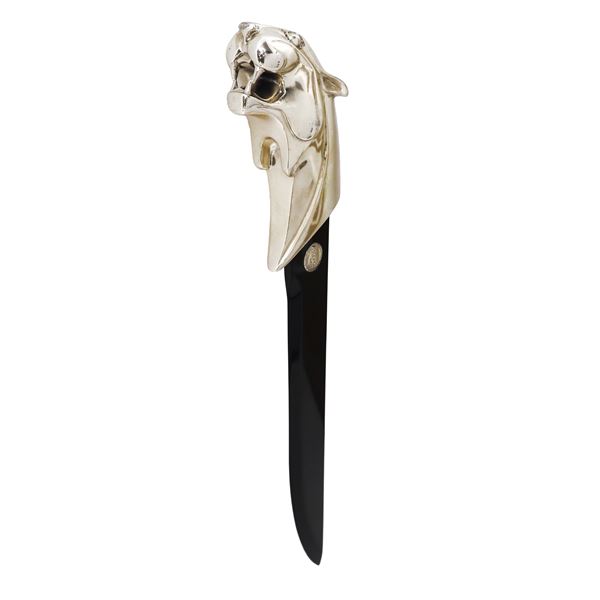 Tagliacarte in argento 925 con testa di giaguaro