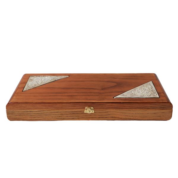 In scatola originale in legno di mogano con inserti in metallo argentato