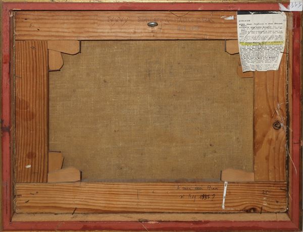 Firma in basso a destra. Al retro al telaio dedicato a Italica Bras.