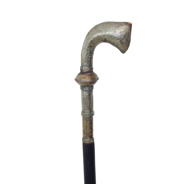 Bastone con impugnatura in metallo argentato a manico di pistola