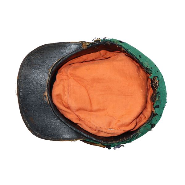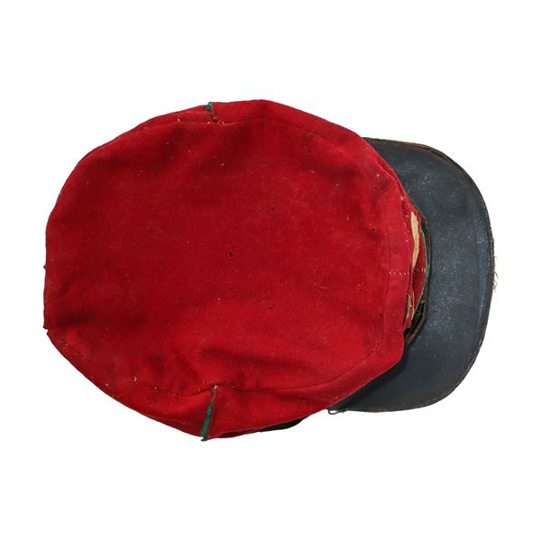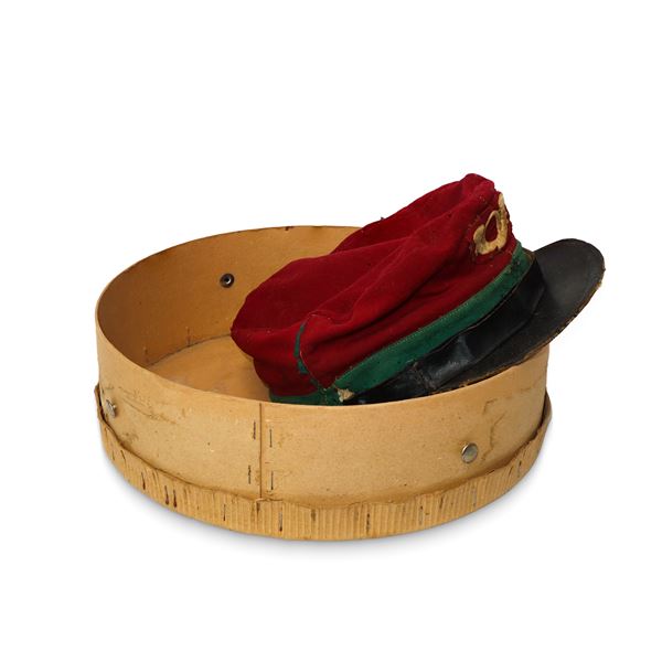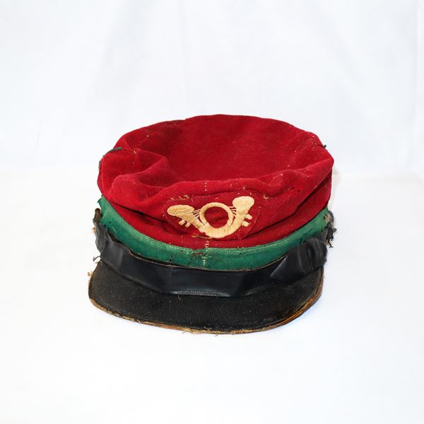 Berretto originale di soldato garibaldino in panno rosso verde e visiera in cuoio