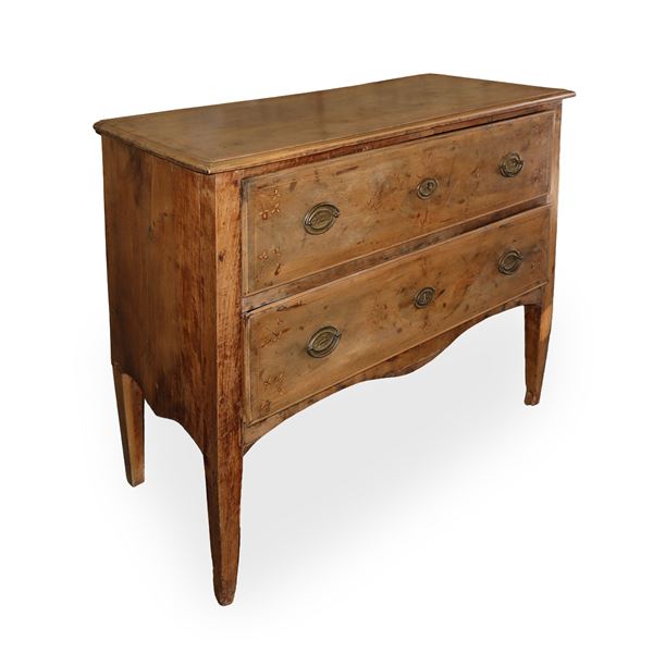 Cassettone Luigi XVI con due cassetti, in legno di noce con intarsi a gelsomino, Sicilia, fine XVIII secolo