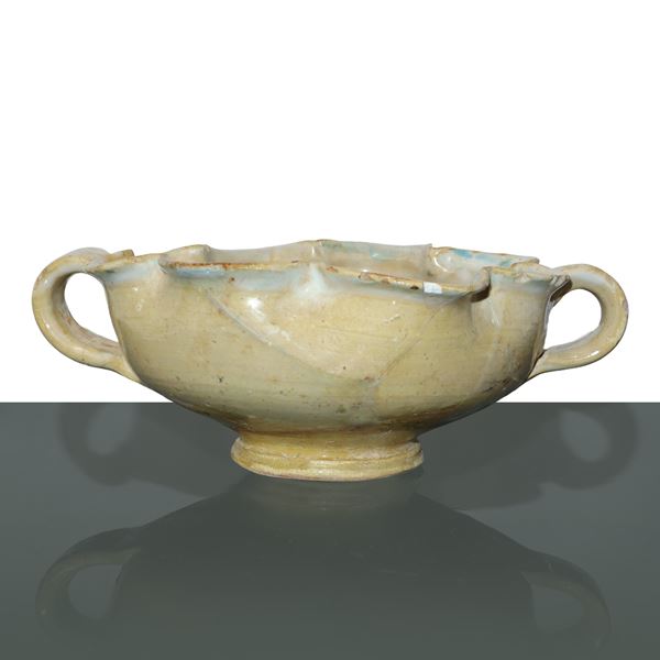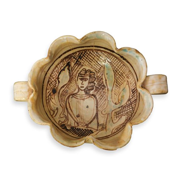 Coppa biansata e ondulata con figura femminile, Italia centrale, XIV secolo