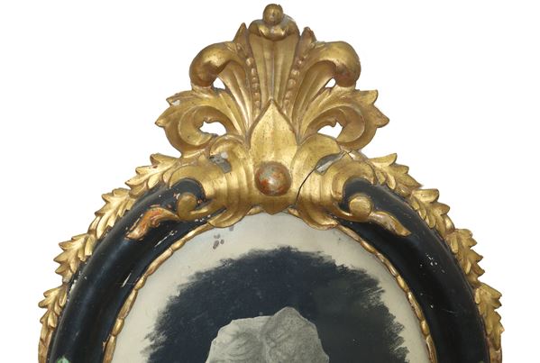 Cornice ovale con decori in oro e stampa, XIX secolo