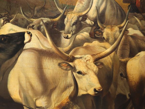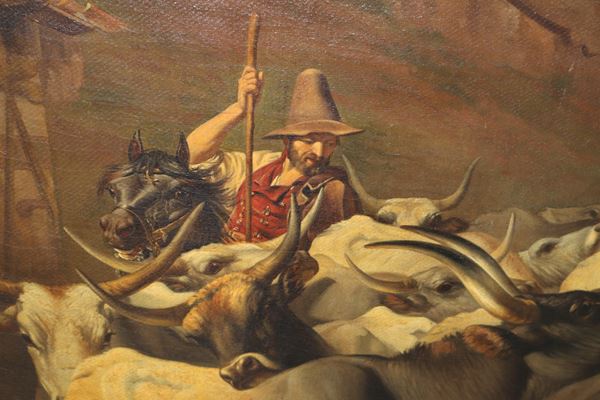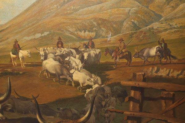 Paesaggio con mandriani romani e buoi, XIX secolo