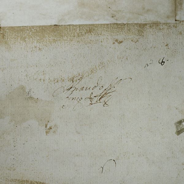 Tra queste c’è proprio la paletta del San Domenico che predica alle turbe che si conserva adesso in una collezione privata romana ed è ancora oggi inedita. Avendo avuto modo di studiarla posso quindi confermare che il disegno del Giordano qui in esame è proprio il modelletto finale per la pala eseguita poi del pittore con l’aiuto di collaboratori, peraltro tutti eccellenti. Lo stile fluido e sensibilissimo del disegno permette di confermarne l’attribuzione a Giordano in persona, con una datazione quindi all’ ottavo decennio del Seicento quando il Maestro fu lungamente attivo in quel contesto.