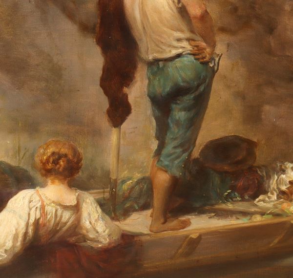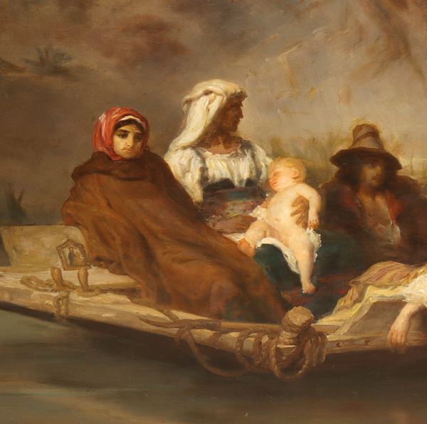 Probabilmente bozzetto autografo dell'opera La Malaria di Ernest Hebert, oggi conservata presso il Musèe D'Orsay (H cm 135x193). Probabile opera autografa, firmata in basso a destra. Si presenta come opera di pieno Ottocento (Metà XIX secolo), rintelata e sprovvista di cornice.