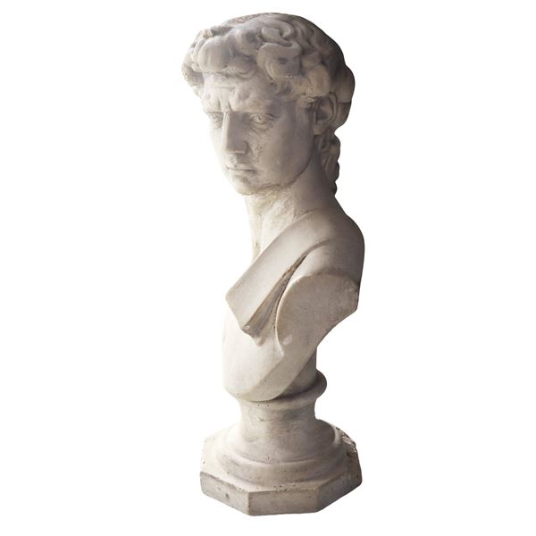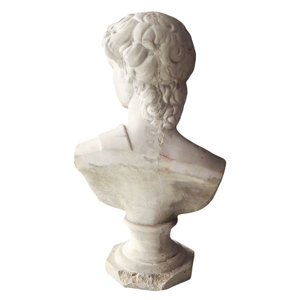 Mezzobusto di auriga romano in malta cementizia, XX secolo