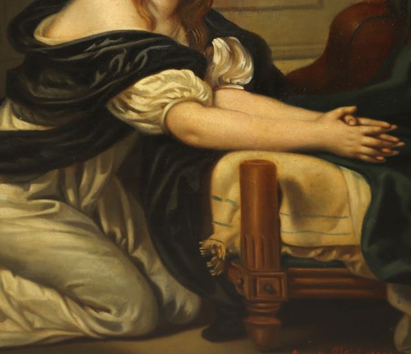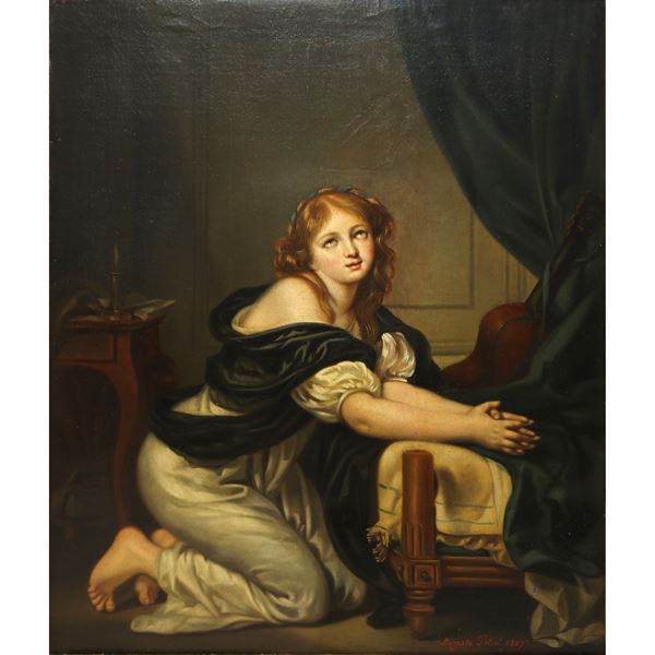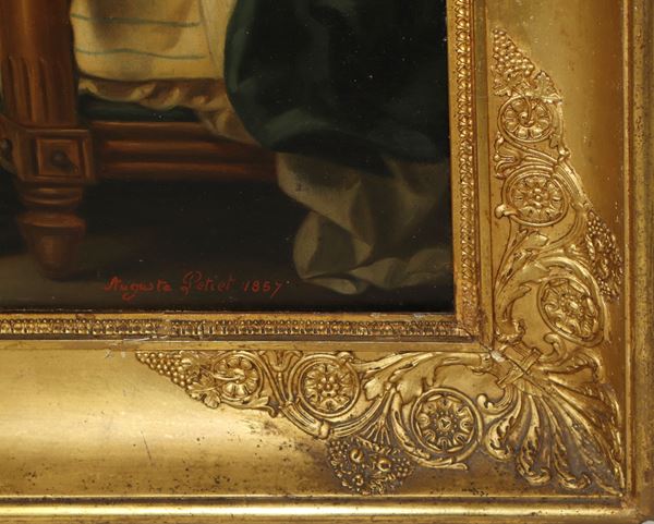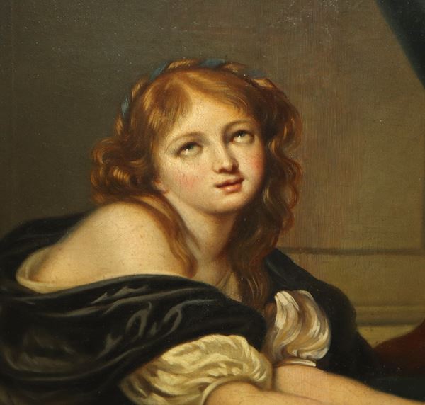 Copia da Jean Baptiste Greuze. Firmato in basso a destra Auguste Petiet. In cornice francese di legno dorata