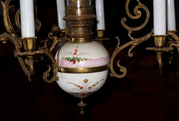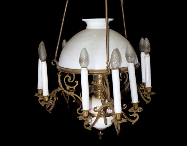 Con campana in opaline bianco e contenitore in porcellana dipinta