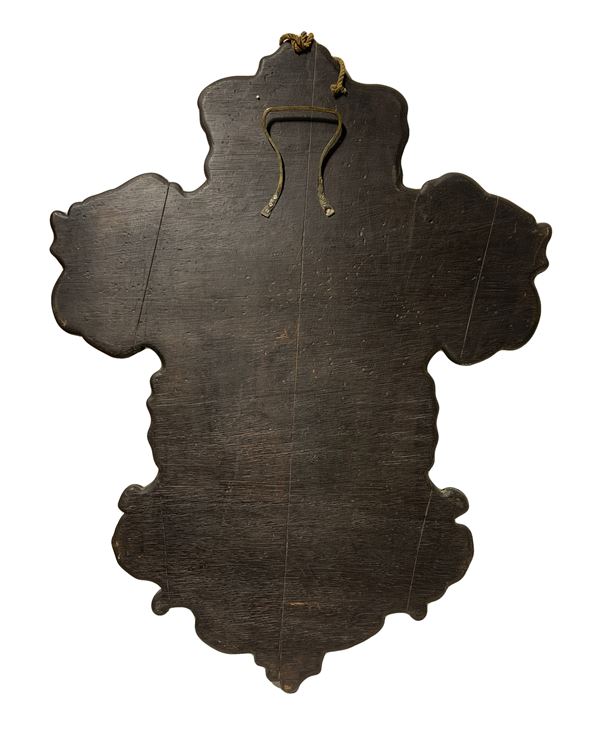 Specchiera con struttura in legno rivestita con lamina in argento sbalzato, XX secolo