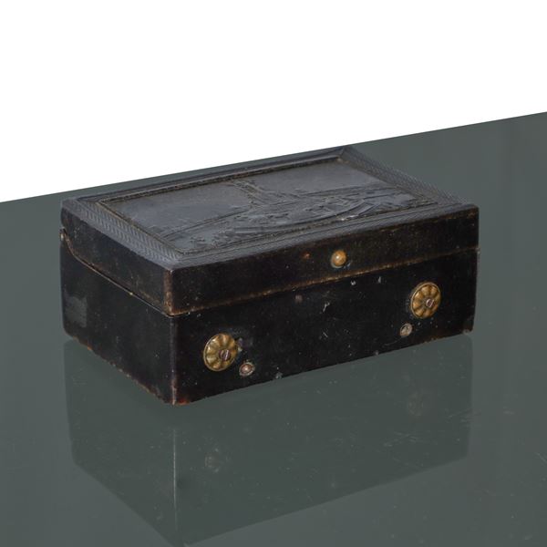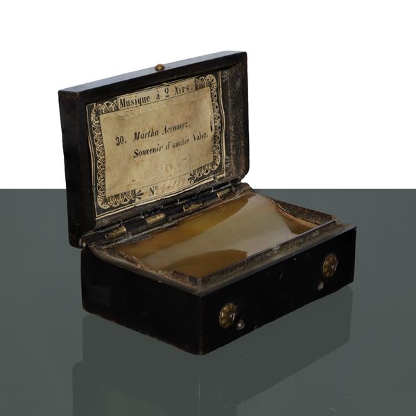 Tabacchiera in corno bruno con carillon a due motivi, XIX secolo