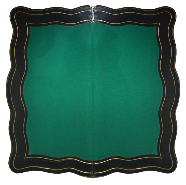 Tavolo da gioco pieghevole Napoleone III in legno ebanizzato nero con ottoni e bronzi dorati, XIX secolo