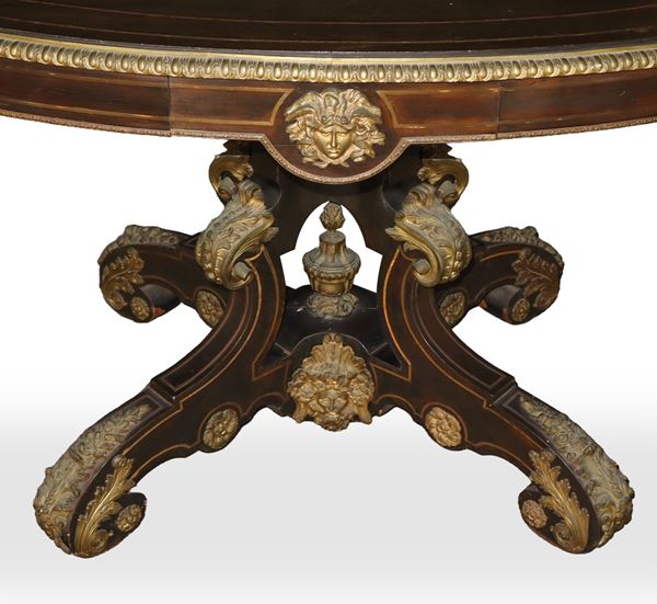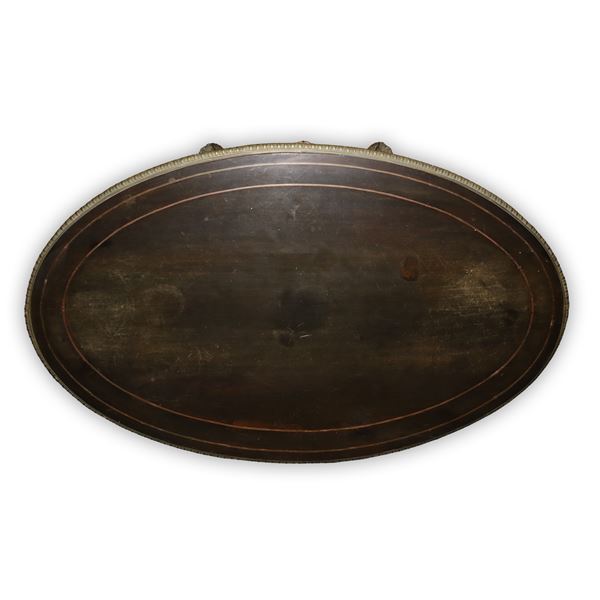 Tavolo laccato nero con filettature in ottone
