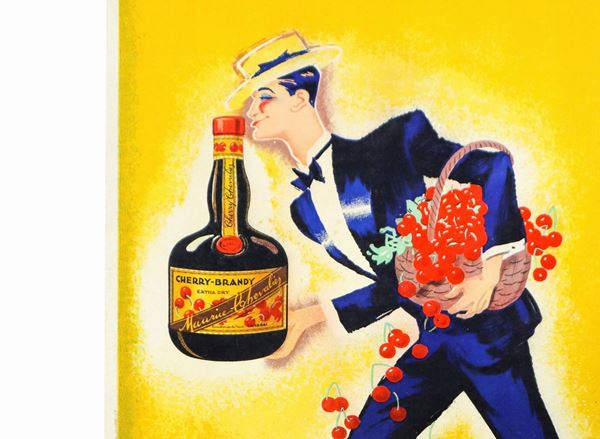 Cartonato promozionale per il brandy Cherry Maurice Chevalier, 1935