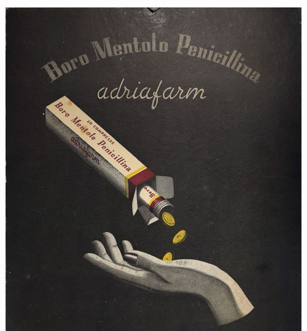 Locandina da banco per compresse Boro Mentolo Penicilina, Anni '40/Anni '50
