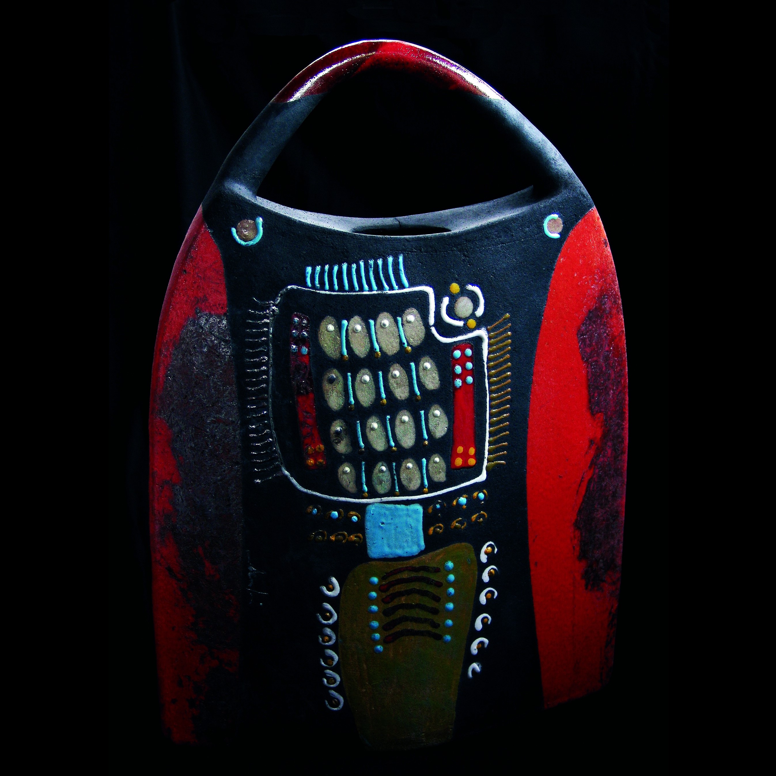 Fu verso la metà degli anni Ottanta, a una bella mostra di artigianato artistico della Sardegna promossa dall'ente regionale ISOLA. Quelle opere di Massimo Boi colpirono per almeno due motivi: perché apparivano così poco consuete, così diverse dai canoni tradizionali della ceramica regionale, e perché ad averli realizzati era un giovane poco più che ventenne. Quei galletti dimostravano che in Sardegna si poteva fare arte senza ripetere pedissequamente i vecchi modelli: ed erano la prova che tra le giovani leve c'era chi, pur non rinnegando la lezione della tradizione, voleva mettere la propria creatività al servizio di nuove frontiere del design. Nato a Carbonia nel 1958, Massimo Boi si è diplomato giovanissimo all'Istituto d'arte di Oristano, sotto la guida di maestri del calibro di Marchionni e di Sciannella. Oristano è la patria dei figoli, artigiani che da secoli si tramandano l'arte del vasellame e delle anfore. La ceramica vi è di casa. A Oristano Massimo Boi, fresco di diploma, ebbe la prima esperienza di lavoro nella CMA, Cooperativa Maestri d'Arte, fondata insieme a un gruppo di altri giovani per portare avanti le tecniche dell'ingobbio e del graffito tipiche della tradizione oristanese. Ma in lui urgeva uno stimolo in più, il senso della ricerca, il gusto dell'innovazione, la necessità di rileggere in chiave moderna il fare ceramica. Trasferitosi nei dintorni di Cagliari, diede vita a uno stile tutto personale con effetti decorativi giocati sull'abbinamento di smalti di colori e opacità contrastanti. In relazione ai quali Gian Carlo Bojani allora direttore del Museo internazionale della ceramica di Faenza, parlò di "nuove curiosità di materiali, tecniche e ricerche", definendo Massimo Boi meritevole di particolare considerazione "per la sintesi fra sollecitazioni diverse che spesso riesce a comporre". Fu proprio l'originalità delle sue opere, unita all'esigenza della sperimentazione che in lui non ha mai cessato di bruciare, che indusse la Cerasarda, la prestigiosa industria della Costa Smeralda, a commissionargli negli anni Ottanta una serie di raffinati oggetti in maiolica. Oggi il suo stile, affinato col passare degli anni e approdato alle particolarità consentite dalla tecnica raku, si presenta originale e sganciato da modelli precostituiti, anche se non è difficile leggervi in profondità le radici di un'identità mediterranea che si manifesta soprattutto nella vivace policromia dei segni. Nei lavori di Massimo Boi traspare anche un ritorno freudiano alla sua città natale, Carbonia, la città del carbone, fondata nel 1938 per valorizzare l'immenso giacimento di lignite sul quale è costruita. L'approdo alla tecnica raku sembra segnare un inconscio riemergere dell'antico DNA minerario di tutti coloro che a Carbonia sono nati o hanno vissuto; e le sue opere odierne, con quegli opachi fondi nerofumo sui quali spicca la variegata colorazione dei disegni e delle pennellate di smalto, paiono riecheggiare le oscure viscere della terra e i volti anneriti dei minatori così come li ritraggono le foto- icona che hanno consegnato alla storia le immagini dell'esaltante epopea mineraria della sua città. Vassoi, centri tavola, vasi, lampade, piatti, mattonelle con ritratti di visi, pezzi unici o di piccola serie realizzati interamente a mano, compongono un'antologia di decorazioni pittoriche di grande suggestione. Si segnalano per l'originalità delle forme, per gli eleganti e vigorosi giochi cromatici, per la magia di segni che costituiscono una citazione in chiave moderna di simboli etnici di antica memoria. "Il contrasto dominante del rosso e del nero, ha scritto Bona Baraldi, è spesso arricchito da intarsi soprasmaltati di oltremarini, ocre chiare, ori, argenti, punzoni a rilievo. Forme e colori si alternano con grande creatività pur restando sempre fedelissimi allo stile inconfondibile di quest'autore, che fa della tecnica e della tradizione formale un basamento su cui poggiarsi per spiccare il volo con proposte sempre nuove". La proposta più recente è la contaminazione dell'argilla con altri materiali (vetro, metallo, stoffa), che sta portando a sorprendenti composizioni materiche.