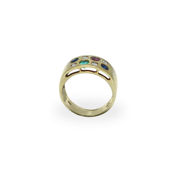 Anello in oro giallo a fascia con pietre sul fronte
