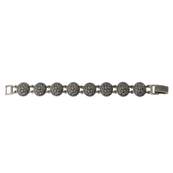 Bracciale in argento 925 con piccoli medaglioni con marcassiti