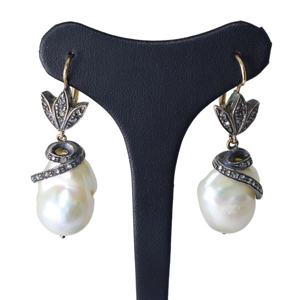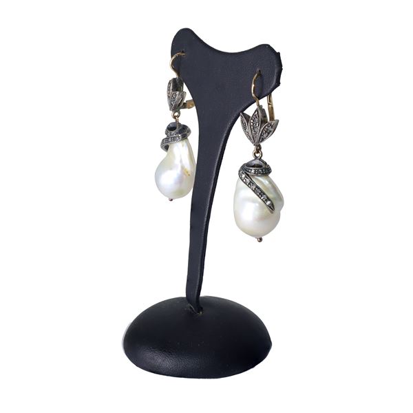 Orecchini in argento e oro 9 kt con perla scaramazza e marcassiti
