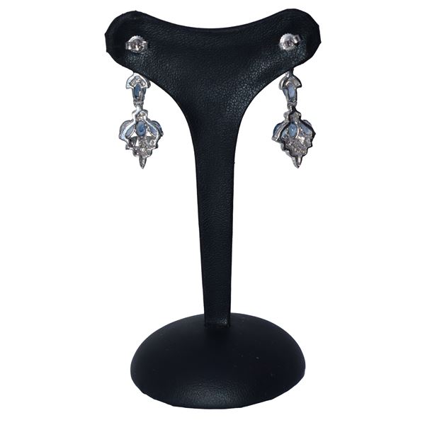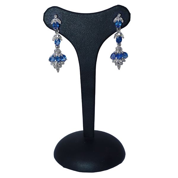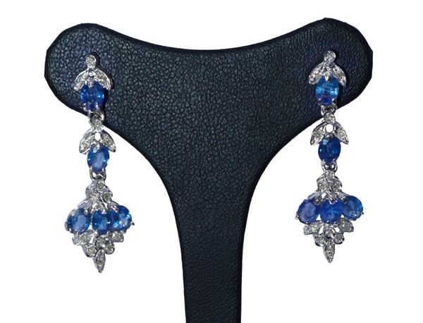 Orecchini pendenti in oro bianco e zaffiri con motivi a foglie
